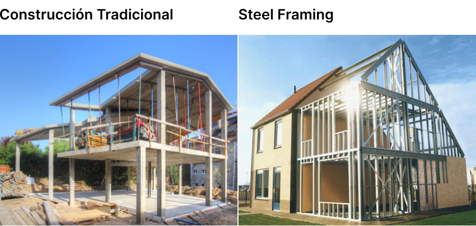 A diferencia de la construcción tradicional, que utiliza materiales pesados como el hormigón y la mampostería (ladrillos, bloques, piedras...) Steel Framing emplea elementos de acero muy ligeros industrializados y preparados en fábrica para su posterior ensamblaje en obra. Esta tecnología permite crear estructuras ligeras, resistentes y duraderas, con una gran flexibilidad de diseño. Además, el sistema estructural Steel Framing destaca por su rapidez de ejecución, menor impacto ambiental y excelentes propiedades de aislamiento térmico y acústico. A diferencia de la construcción tradicional de hormigón, el sistema Steel Framing no solo cumple su función estructural, además da forma a la construcción, por lo que los trabajos de mampostería posteriores no son necesarios.